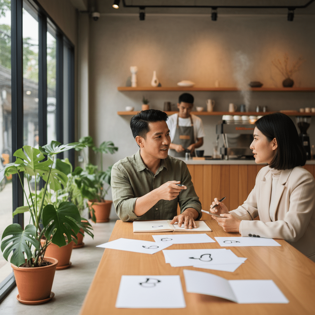 - การพัฒนาคอนเซ็ปต์สู่ภาพลักษณ์: คอนเซ็ปต์ร้านที่แข็งแกร่งและแตกต่างเป็นหัวใจของการออกแบบ การแปลงแนวคิดที่เป็นนามธรรมให้กลายเป็นภาพที่จับต้องได้ผ่านโลโก้และเมนูคือสิ่งที่สร้างความแตกต่าง