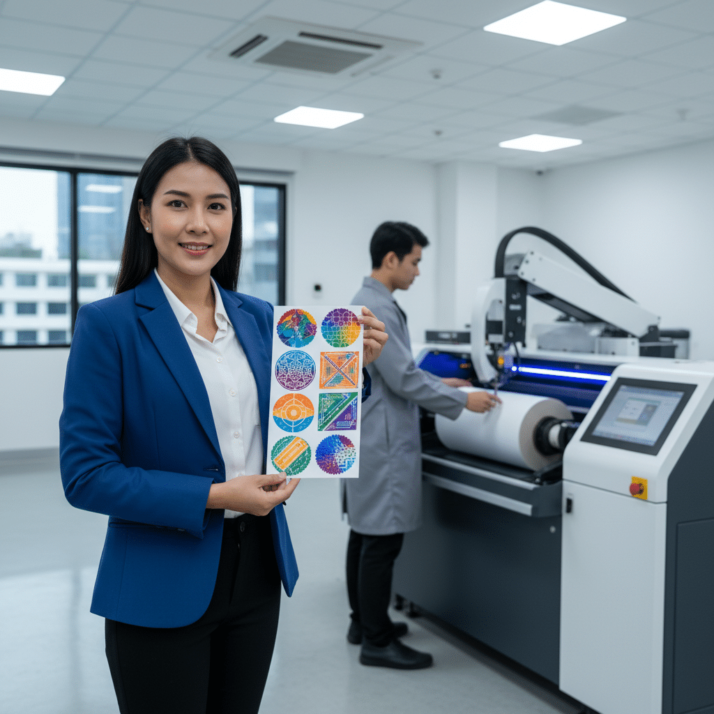 เพื่อให้ได้ฉลากพรีเมียมอย่างแท้จริง เทคโนโลยีการตัดเพียงอย่างเดียวไม่เพียงพอ คุณภาพของการพิมพ์คืออีกหนึ่งปัจจัยสำคัญ โรงพิมพ์ระบบดิจิทัลชั้นนำจึงเลือกใช้เครื่องพิมพ์ที่มีเทคโนโลยีขั้นสูง เช่น เครื่องพิมพ์ Fuji Xerox ซึ่งเป็นที่รู้จักในด้านความสามารถในการผลิตสีที่สดใส คมชัด และมีความสม่ำเสมอของสีสูง ทำให้รายละเอียดเล็กๆ บนฉลากสินค้าดูมีมิติและน่าดึงดูดใจ การพิมพ์ที่มีคุณภาพสูงนี้เมื่อรวมกับการไดคัทดิจิทัลที่แม่นยำ จึงเป็นการยกระดับภาพลักษณ์ของสินค้าให้เทียบเท่ากับแบรนด์ชั้นนำในตลาดได้อย่างสมบูรณ์แบบ