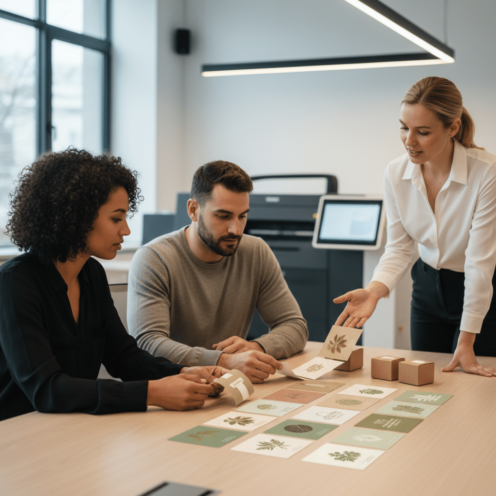 - กระดาษรีไซเคิลและไฟเบอร์ธรรมชาติ: มีการพัฒนาเทคนิคการผลิตที่ทำให้กระดาษรีไซเคิลมีพื้นผิวที่หลากหลาย น่าสัมผัส และสามารถพิมพ์สีสันสดใสได้อย่างคมชัด ทำให้ดูพรีเมียมและน่าใช้มากขึ้น