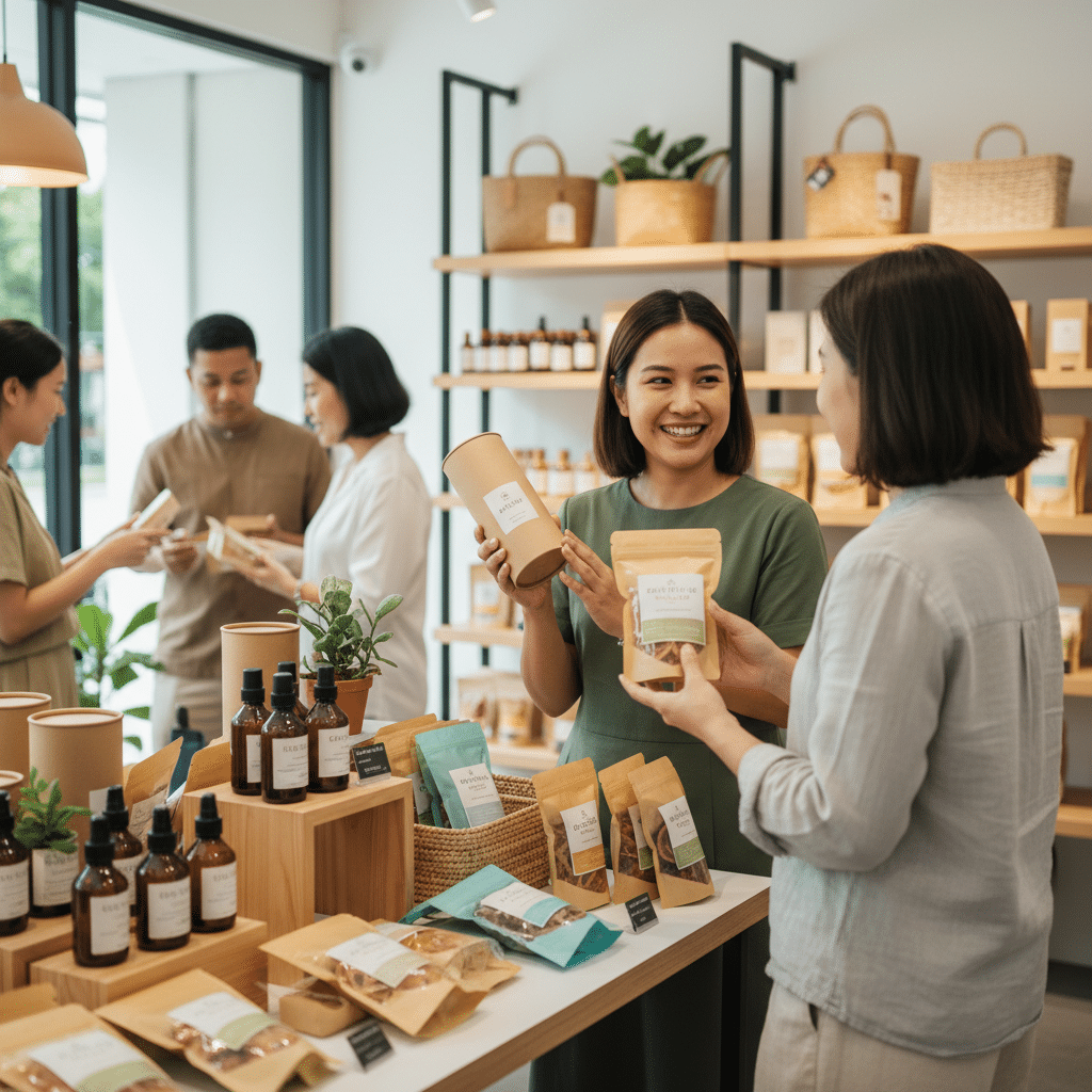 SME ไทยจำนวนมากมีความเชี่ยวชาญในการผลิตสินค้าที่มีคุณภาพอยู่แล้ว แต่สิ่งที่สามารถต่อยอดได้คือการเพิ่มมูลค่าผ่านการสร้างแบรนด์และการออกแบบบรรจุภัณฑ์ (Brand Storytelling & Packaging Design) บรรจุภัณฑ์ไม่ได้เป็นแค่สิ่งที่ห่อหุ้ม แต่เป็นผืนผ้าใบสำหรับเล่าเรื่องราวของแบรนด์ ไม่ว่าจะเป็นเรื่องราวเกี่ยวกับที่มาของวัตถุดิบ, กระบวนการผลิตที่ใส่ใจ, หรือปรัชญาของแบรนด์ที่ต้องการสร้างผลกระทบเชิงบวกต่อสังคม การสื่อสารสิ่งเหล่านี้ผ่านดีไซน์ที่สวยงามและมีความหมายจะช่วยยกระดับสินค้าธรรมดาให้กลายเป็นสินค้าพรีเมียมได้