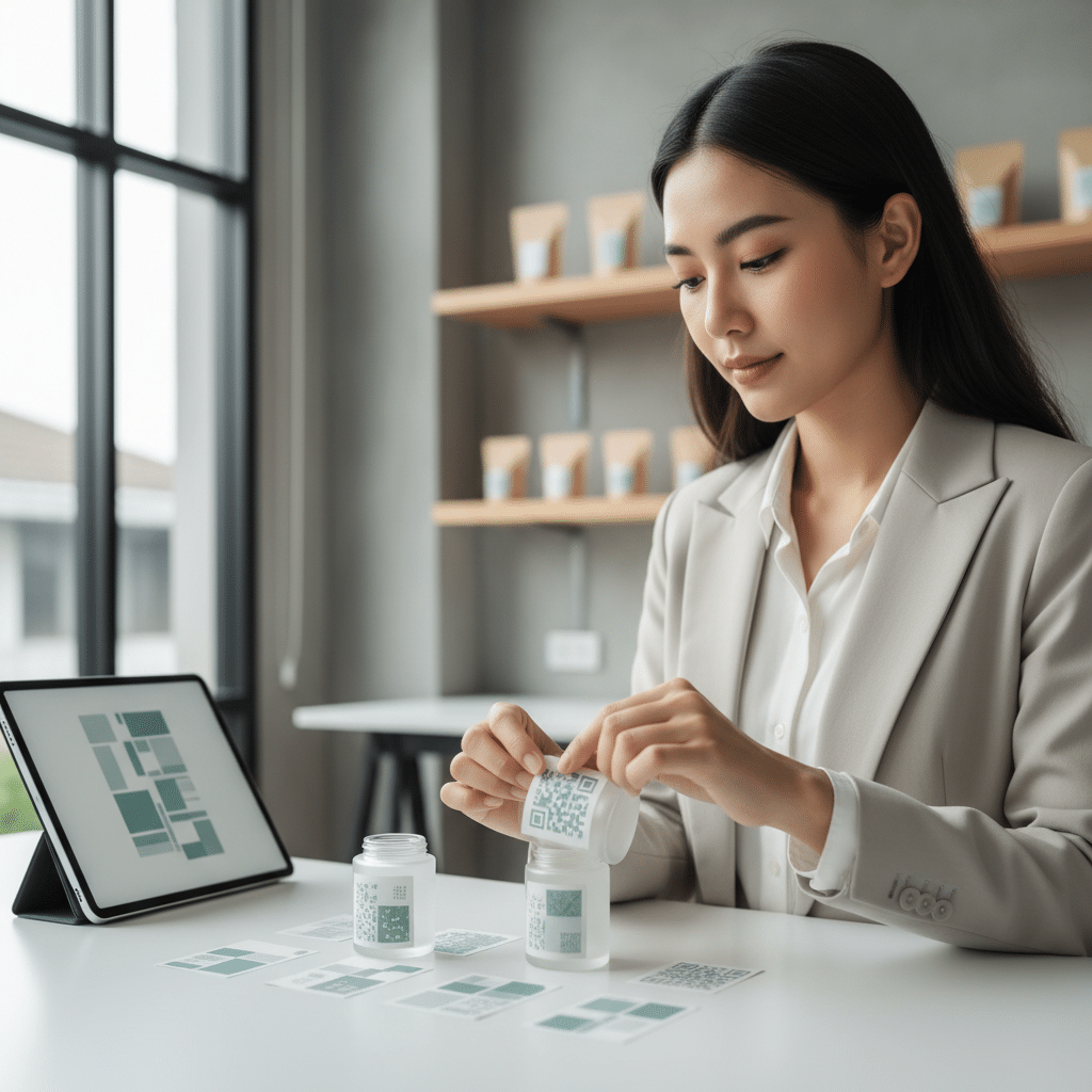 บรรจุภัณฑ์อัจฉริยะคือการผสานเทคโนโลยีเข้ากับบรรจุภัณฑ์แบบดั้งเดิม เพื่อเพิ่มฟังก์ชันการทำงานที่มากกว่าแค่การห่อหุ้มสินค้า เทคโนโลยีที่นิยมใช้มากที่สุดคือ QR Code ซึ่งสามารถพิมพ์ลงบนฉลากมินิมอลได้อย่างกลมกลืน เมื่อผู้บริโภคสแกน QR Code ก็จะสามารถเข้าถึงข้อมูลเพิ่มเติมได้หลากหลายรูปแบบ เช่น วิดีโอสาธิตวิธีการใช้งาน, เรื่องราวเบื้องหลังของผลิตภัณฑ์, ข้อมูลด้านความยั่งยืน, หรือแม้กระทั่งโปรโมชันพิเศษ การทำเช่นนี้ไม่เพียงแต่ให้ข้อมูล แต่ยังสร้างการมีส่วนร่วมและยืดเวลาที่ผู้บริโภคจะอยู่กับแบรนด์ให้นานขึ้น สำหรับ SME นี่เป็นวิธีที่คุ้มค่าในการให้ข้อมูลเชิงลึกโดยไม่ทำให้ฉลากดูรก