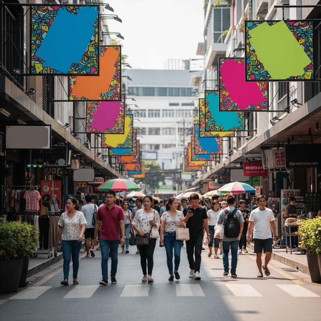 - การกลับมาของสื่อออฟไลน์: ป้ายไวนิลและใบปลิวกลับมามีบทบาทสำคัญอีกครั้ง เนื่องจากเป็นเครื่องมือที่คุ้มค่าและสามารถเจาะกลุ่มเป้าหมายในพื้นที่ได้อย่างแม่นยำ