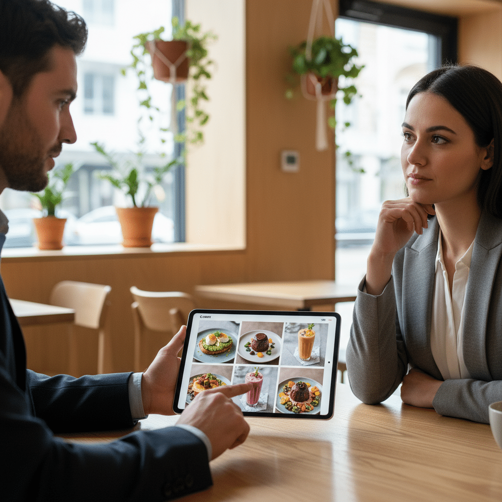 - จิตวิทยาการจัดวาง: การวางเมนูที่มีกำไรสูงสุดในตำแหน่งที่สายตามองเห็นเป็นอันดับแรก เช่น มุมขวาบน สามารถเพิ่มโอกาสในการสั่งซื้อได้อย่างมีนัยสำคัญ