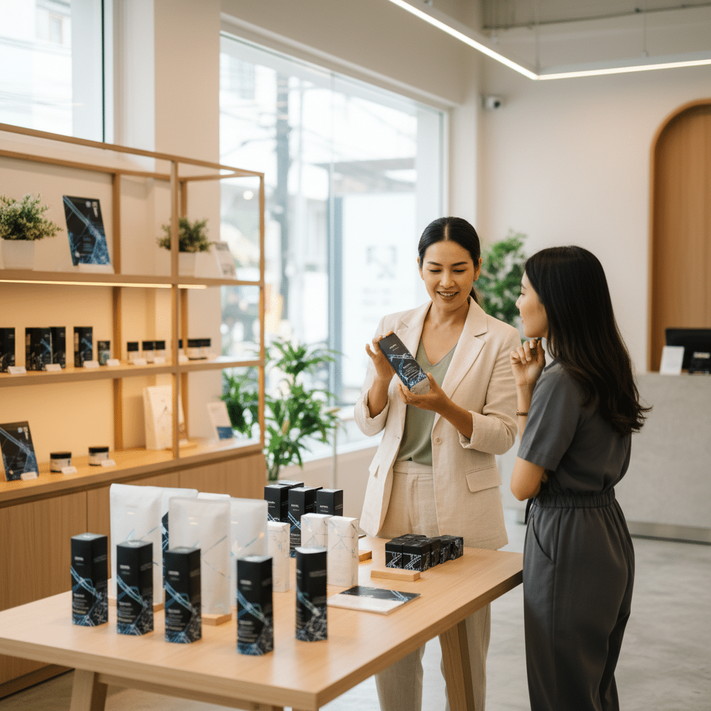 - เพิ่มยอดขายผ่านการตลาดแบบ Phygital: การเชื่อมโยงประสบการณ์หน้าร้าน (Physical) กับโลกออนไลน์ (Digital) ช่วยสร้างความโดดเด่นและดึงดูดความสนใจของผู้บริโภคในตลาดที่แออัด