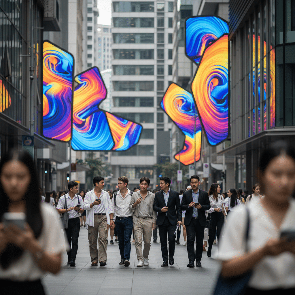 - การเปลี่ยนสู่ดิจิทัล (DOOH): สื่อโฆษณานอกบ้านแบบดิจิทัล (Digital Out-of-Home) ที่สามารถปรับเปลี่ยนเนื้อหาได้แบบเรียลไทม์กำลังเข้ามาแทนที่ป้ายโฆษณาแบบนิ่ง (Static OOH) แบบดั้งเดิม