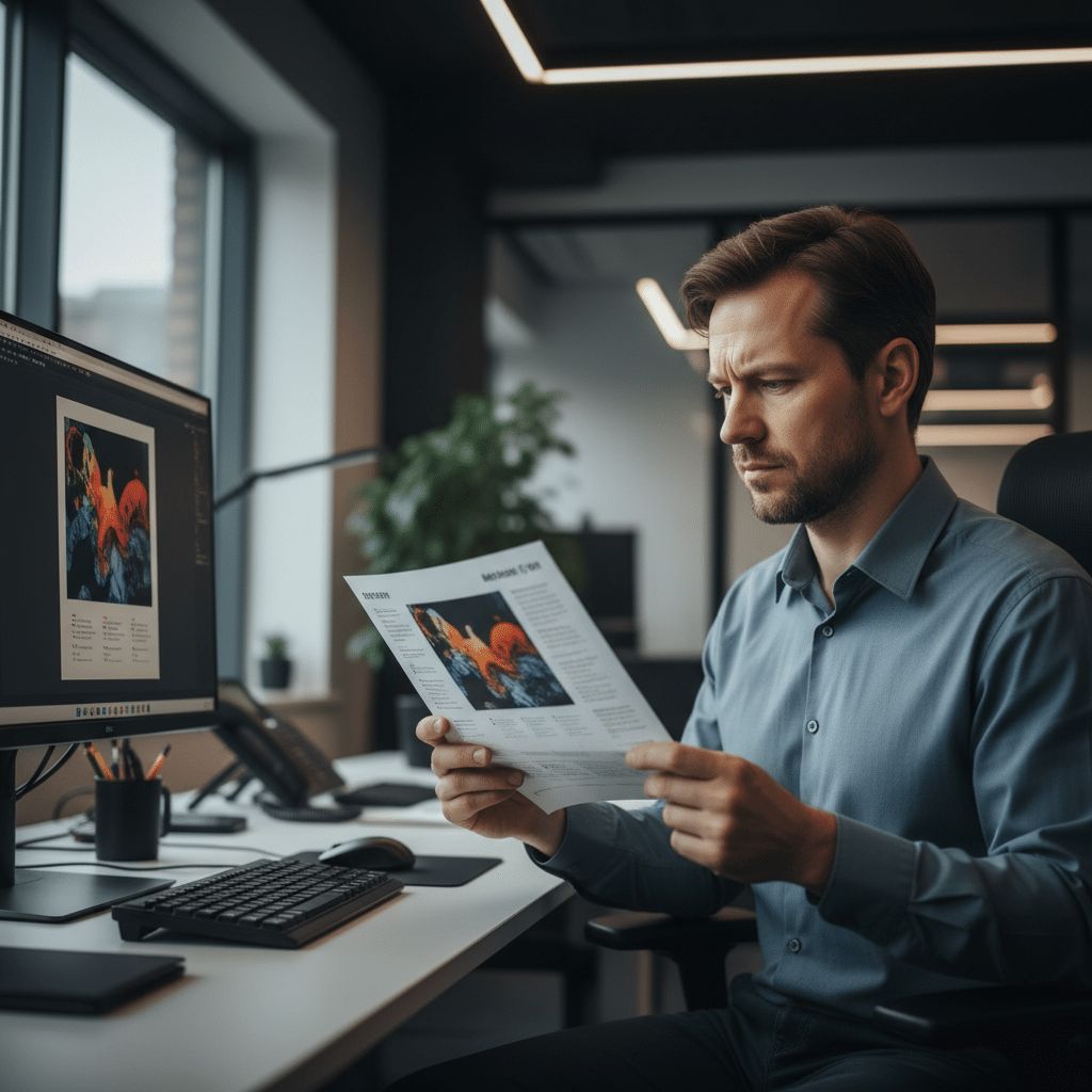 เพื่อหลีกเลี่ยงข้อผิดพลาดที่อาจทำให้ต้องเสียทั้งเงินและเวลา การตรวจสอบไฟล์งานออกแบบที่สร้างจาก AI อย่างละเอียดก่อนส่งให้โรงพิมพ์จึงเป็นขั้นตอนที่ขาดไม่ได้ ต่อไปนี้คือ 5 จุดสำคัญที่ต้องให้ความสนใจเป็นพิเศษ