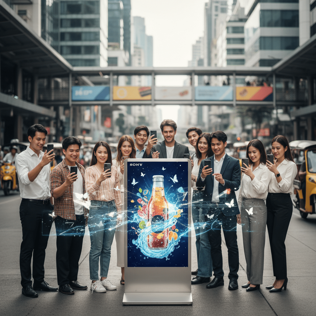 | Augmented Reality (AR) | ผสานภาพในโลกจริงกับวัตถุดิจิทัลผ่านกล้องสมาร์ทโฟน เช่น การทำให้ป้ายโฆษณานิ่งเคลื่อนไหว หรือแสดงโมเดลสินค้า 3 มิติแบบโต้ตอบได้ | สร้างประสบการณ์ที่ล้ำสมัยและน่าจดจำโดยไม่ต้องลงทุนกับหน้าจอดิจิทัลขนาดใหญ่ เน้นการใช้ Web AR ที่เข้าถึงง่ายเพื่อลดอุปสรรคของผู้ใช้ |