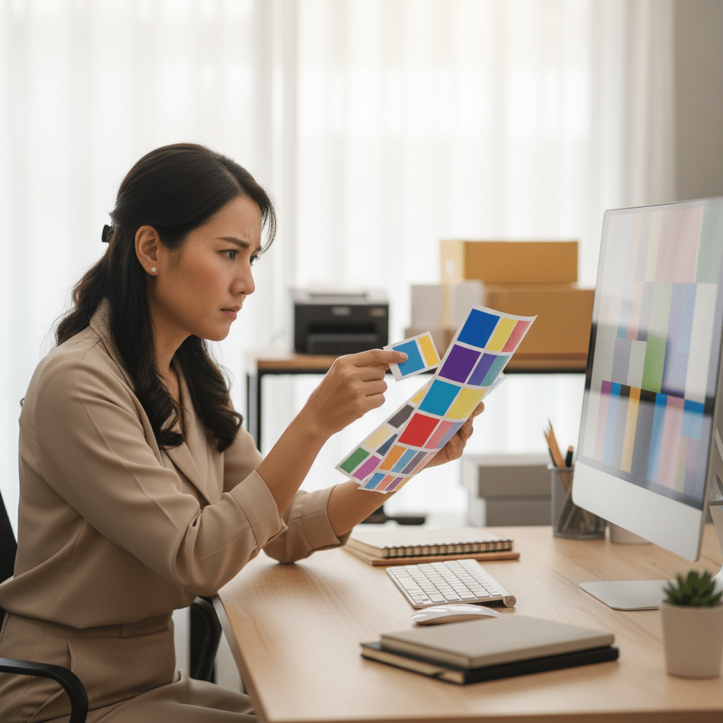 - โปรไฟล์สี (Color Profile): ในบางครั้ง แม้จะตั้งค่า CMYK ถูกต้องแล้ว สีก็ยังอาจเพี้ยนเล็กน้อย ซึ่งอาจเกิดจากโปรไฟล์สีของเครื่องพิมพ์แต่ละแห่งไม่ตรงกัน หากแบรนด์ของคุณมีสีเฉพาะ (Corporate Identity Color) ที่ต้องแม่นยำมาก แนะนำให้สอบถามโปรไฟล์สีที่โรงพิมพ์ใช้ หรือส่งรหัสสี Pantone เพื่อให้โรงพิมพ์เทียบสีให้ใกล้เคียงที่สุด