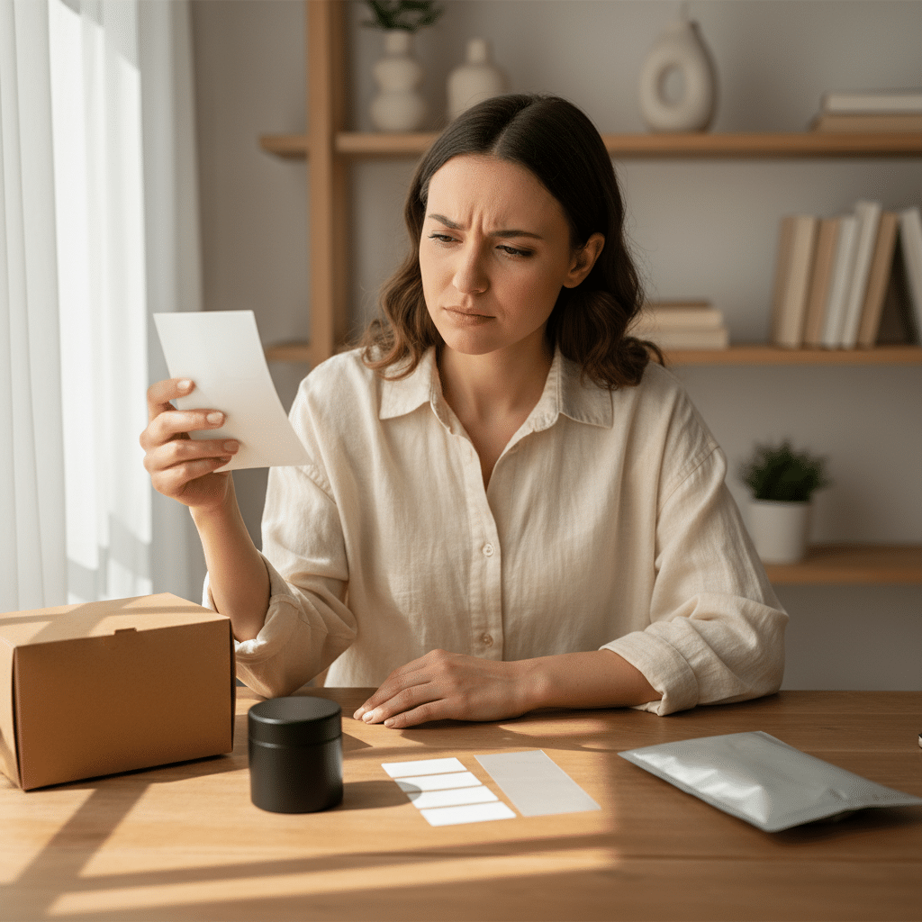 - ทดสอบก่อนผลิตจริง: ควรขอตัวอย่างสติ๊กเกอร์จากโรงพิมพ์เพื่อนำมาทดลองติดบนบรรจุภัณฑ์จริงเสมอ การทดสอบจะช่วยให้เห็นภาพรวมของสินค้าเมื่อเสร็จสมบูรณ์ และสามารถตรวจสอบการยึดเกาะของกาว สีสันหลังการพิมพ์ และความเหมาะสมของขนาดได้ก่อนการผลิตทั้งหมด