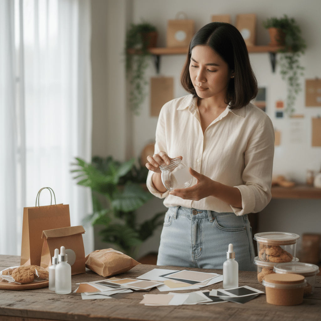- กระดาษคราฟท์ (Kraft Paper): ให้ความรู้สึกเป็นธรรมชาติ สไตล์วินเทจ เหมาะกับสินค้าออร์แกนิก สินค้าทำมือ หรือแบรนด์ที่ต้องการสื่อถึงความเป็นมิตรต่อสิ่งแวดล้อม