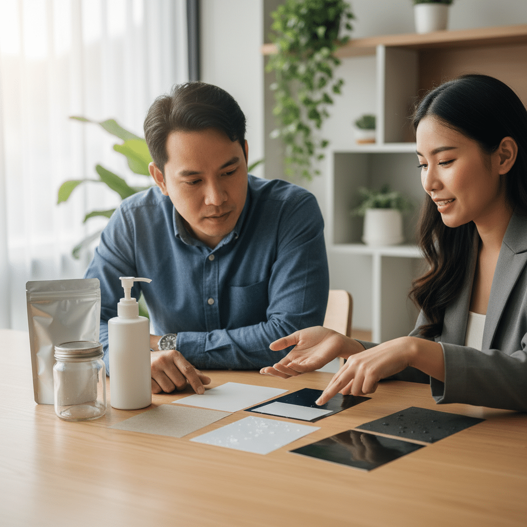 ก่อนที่จะสั่งผลิตสติ๊กเกอร์ในปริมาณมาก ควรขอตัวอย่างวัสดุจากโรงพิมพ์มาทดลองติดบนบรรจุภัณฑ์จริง และนำไปทดสอบในสภาพแวดล้อมที่สินค้าจะต้องเผชิญ เช่น นำไปแช่ตู้เย็น แช่น้ำ หรือวางไว้กลางแดด เพื่อตรวจสอบการยึดเกาะ ความทนทานของหมึกพิมพ์ และลักษณะโดยรวมเมื่ออยู่บนผลิตภัณฑ์ วิธีนี้จะช่วยลดความเสี่ยงจากความผิดพลาดและทำให้มั่นใจได้ว่าสติ๊กเกอร์ที่เลือกมีคุณสมบัติตรงตามที่ต้องการ