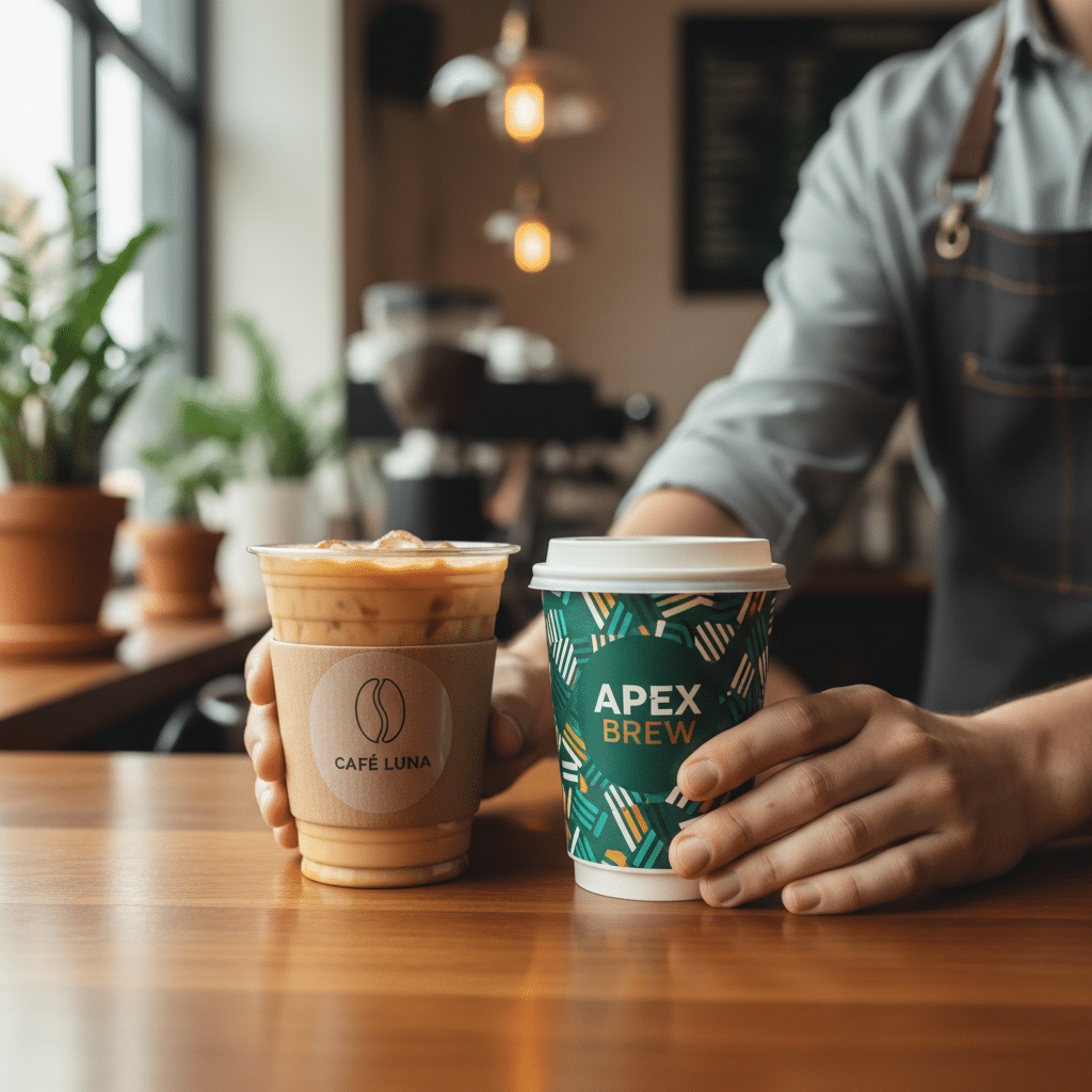 ร้านค้าประเภทนี้ส่วนใหญ่นิยมใช้ สติ๊กเกอร์ PP ขาว (ทั้งแบบเงาและด้าน) เนื่องจากต้องการให้โลโก้และข้อมูลของแบรนด์มีความโดดเด่นและชัดเจนที่สุดบนตัวแก้ว พื้นหลังสีขาวของสติ๊กเกอร์ช่วยขับสีของงานพิมพ์ให้สดใสและอ่านง่าย สร้างภาพลักษณ์ที่ดูสะอาดตาและเป็นมืออาชีพ คุณสมบัติกันน้ำ 100% ทำให้มั่นใจได้ว่าแม้แก้วกาแฟเย็นจะมีไอน้ำเกาะตลอดทั้งวัน สติ๊กเกอร์ก็ยังคงติดแน่น สีไม่ลอก และดูสวยงามเหมือนเดิม ซึ่งเป็นการรักษามาตรฐานและสร้างความน่าเชื่อถือให้กับแบรนด์
