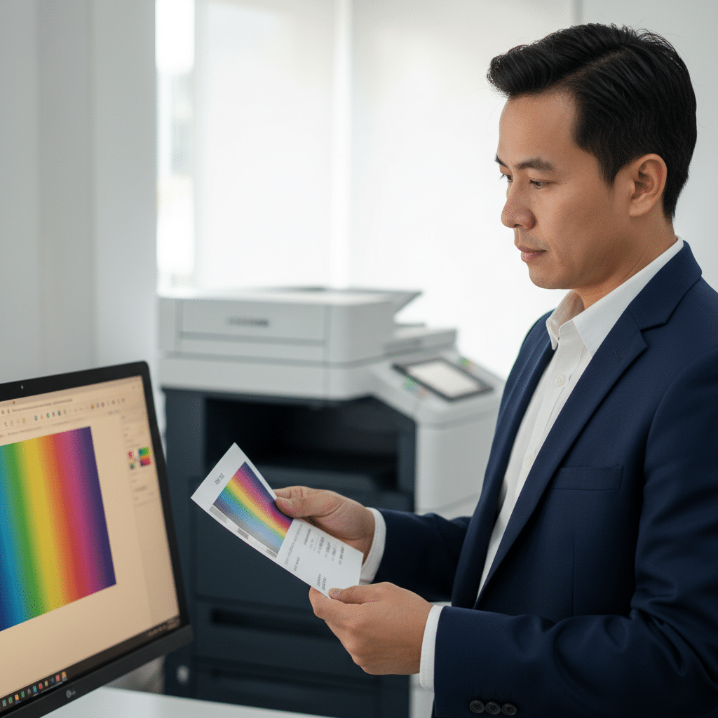 สำหรับงานที่ต้องการความแม่นยำของสีสูงสุด เช่น งานพิมพ์แคตตาล็อกสินค้าหรือบรรจุภัณฑ์ การขอตัวอย่างงานพิมพ์จริง (Proof) จากโรงพิมพ์เป็นขั้นตอนที่ขาดไม่ได้ การได้เห็นและสัมผัสชิ้นงานจริงก่อนการผลิตจำนวนมาก จะช่วยให้สามารถตรวจสอบและยืนยันความถูกต้องของสีได้อย่างมั่นใจที่สุด