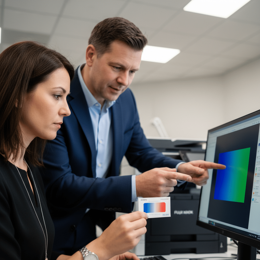- การขอตัวอย่างพิมพ์ (ปรู๊ฟ) ก่อนผลิตจริง: สำหรับงานที่ต้องการความแม่นยำของสีสูง หรือการผลิตจำนวนมาก การลงทุนขอตัวอย่างงานพิมพ์จริง (Hard Proof) จากโรงพิมพ์เป็นสิ่งที่คุ้มค่า เพราะจะทำให้เห็นสีบนวัสดุจริงภายใต้แสงจริง ทำให้สามารถอนุมัติหรือแก้ไขก่อนที่จะเริ่มการผลิตทั้งหมด
