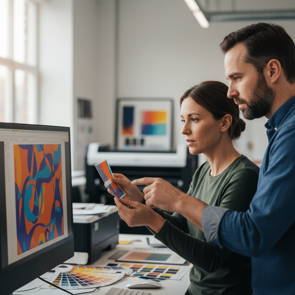- ทำการ Proof สี: ก่อนสั่งพิมพ์จำนวนมาก ควรขอตัวอย่างงานพิมพ์เพื่อตรวจสอบสีก่อนเสมอ การ Proof มีหลายรูปแบบ ตั้งแต่ Soft Proof (การจำลองสี CMYK บนหน้าจอ) ไปจนถึง Hard Proof (การพิมพ์ตัวอย่างจริงออกมาดู) ซึ่งเป็นวิธีที่แม่นยำที่สุดในการยืนยันว่าสีที่ได้จะเป็นไปตามที่คาดหวัง