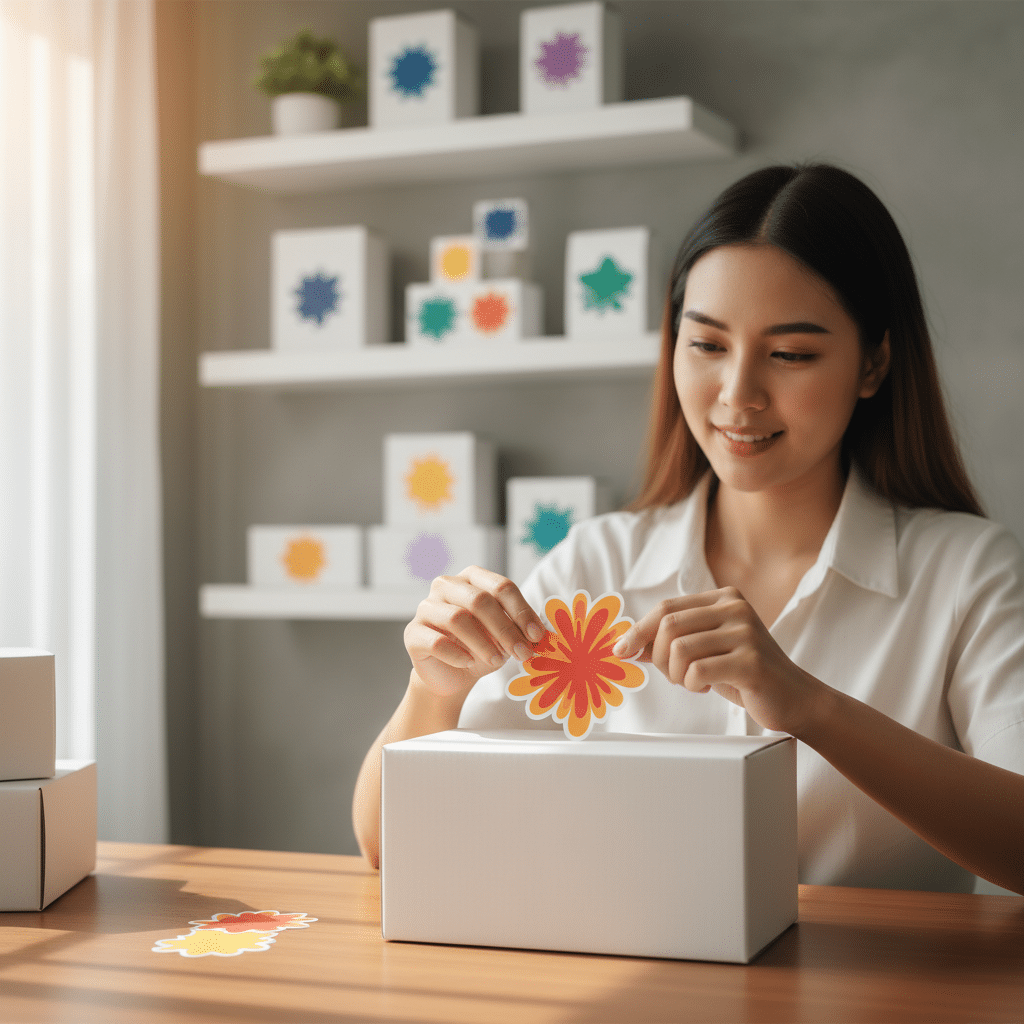 ธุรกิจ SME จำนวนมากอาจเริ่มต้นด้วยบรรจุภัณฑ์มาตรฐาน เช่น กล่องกระดาษสีน้ำตาล ถุงซิปล็อก หรือขวดแก้วเรียบๆ สติ๊กเกอร์ไดคัทคือเครื่องมือที่จะเปลี่ยนบรรจุภัณฑ์เหล่านี้ให้ดูมีราคาและน่าสนใจขึ้นมาทันที การติดสติ๊กเกอร์โลโก้ที่ออกแบบมาอย่างดีลงบนกล่องธรรมดา สามารถสร้างความรู้สึกเหมือนเป็นสินค้าที่ได้รับการออกแบบมาเป็นพิเศษ (Custom-made) ช่วยยกระดับการรับรู้ของลูกค้าและทำให้พวกเขารู้สึกว่ากำลังซื้อสินค้าที่มีคุณภาพสูงขึ้น