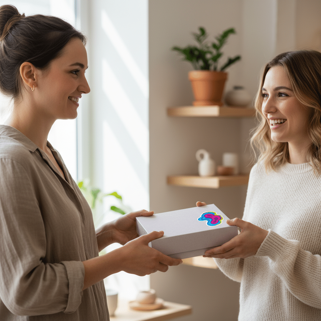สติ๊กเกอร์ไดคัทยังสามารถทำหน้าที่เป็นส่วนหนึ่งของบรรจุภัณฑ์ได้อย่างมีสไตล์ การใช้สติ๊กเกอร์โลโก้หรือดีไซน์สวยๆ ปิดทับบนกล่องพัสดุ, ถุงกระดาษ, หรือแม้กระทั่งกระดาษห่อสินค้า เป็นการสร้างสัมผัสสุดท้าย (Final Touch) ที่ลูกค้าจะได้เห็นก่อนเปิดสินค้า สิ่งนี้ช่วยยกระดับประสบการณ์แกะกล่อง (Unboxing Experience) ให้ดูพรีเมียมและใส่ใจในรายละเอียดมากขึ้น ทำให้ภาพลักษณ์ของสินค้าดูมีมูลค่าสูงขึ้นทันที