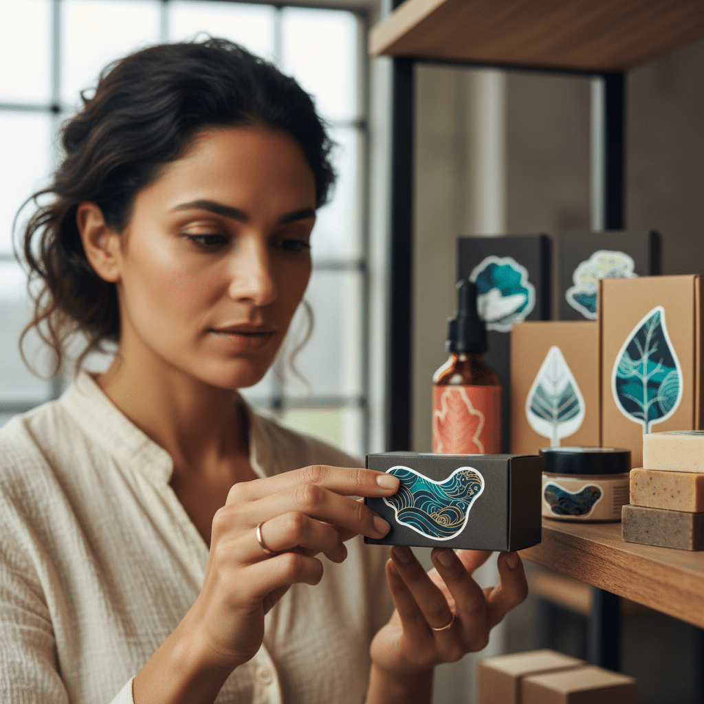 แบรนด์สกินแคร์ออร์แกนิกอาจเลือกใช้สติ๊กเกอร์กระดาษไดคัทเป็นรูปใบไม้หรือดอกไม้ พิมพ์ด้วยสีเอิร์ธโทน พร้อมเคลือบด้านเพื่อให้สัมผัสที่นุ่มนวลและดูเป็นธรรมชาติ ในขณะที่แบรนด์เครื่องสำอางสำหรับวัยรุ่นอาจใช้สติ๊กเกอร์ PP ใส ไดคัทเป็นรูปทรงสนุกสนาน พิมพ์ด้วยสีสันสดใส เพื่อสร้างลุคที่ทันสมัยและโชว์สีของผลิตภัณฑ์ภายใน