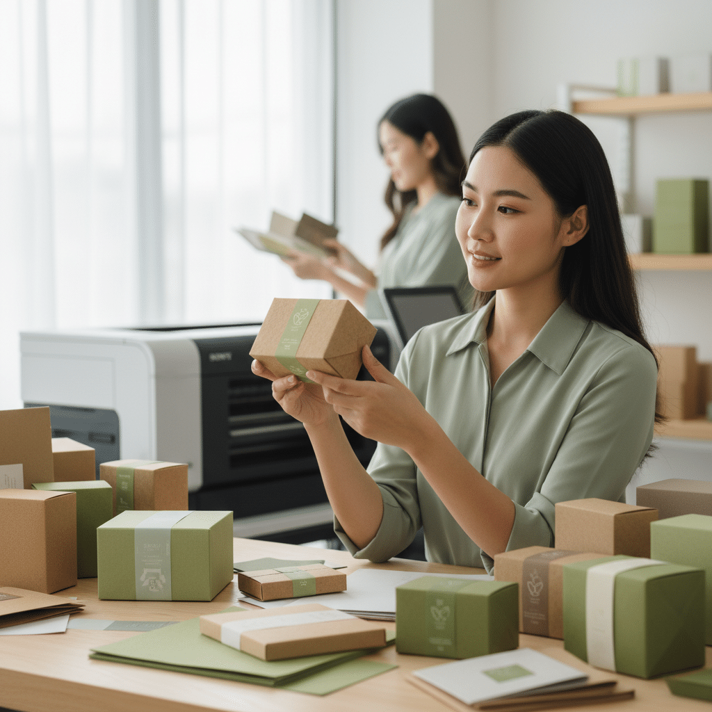 นี่คือส่วนที่ลูกค้าสัมผัสได้โดยตรงและชัดเจนที่สุด การเลือกใช้กล่องกระดาษรีไซเคิล, ถุงกระดาษคราฟท์, หรือการพิมพ์ฉลากสินค้าบนสติกเกอร์ที่ทำจากวัสดุที่เป็นมิตรต่อสิ่งแวดล้อม สามารถสร้างความประทับใจแรกพบและสื่อสารถึงคุณค่าของแบรนด์ได้ทันที การออกแบบที่เรียบง่ายแต่สวยงามบนวัสดุธรรมชาติยังช่วยเสริมให้สินค้าดูมีมูลค่าและน่าสนใจยิ่งขึ้น
