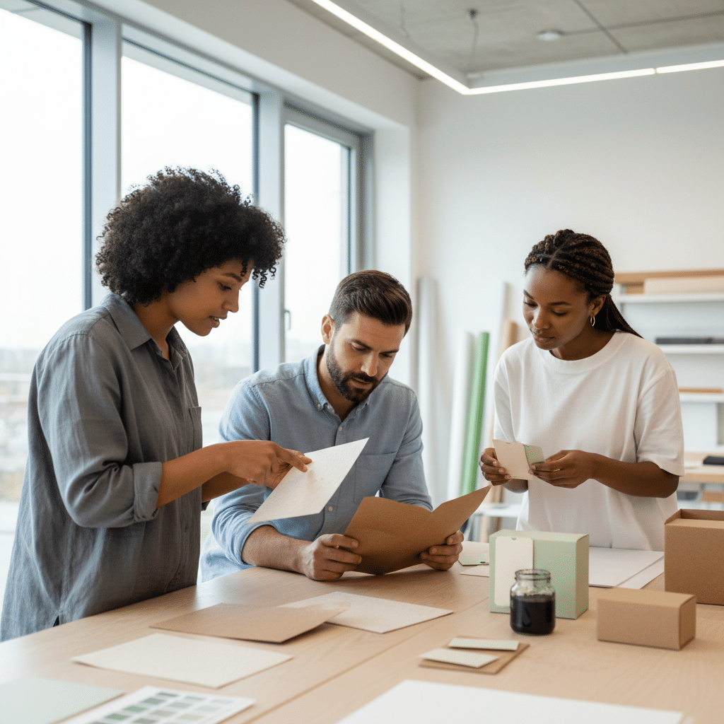 - สำรวจวัสดุและซัพพลายเออร์: เริ่มต้นจากการค้นหาและพูดคุยกับซัพพลายเออร์ที่ให้บริการวัสดุรักษ์โลก เช่น กระดาษรีไซเคิล, สติ๊กเกอร์จากวัสดุ PCR หรือหมึกพิมพ์จากถั่วเหลือง ควรขอเอกสารรับรองมาตรฐานเพื่อยืนยันคุณสมบัติของวัสดุนั้นๆ