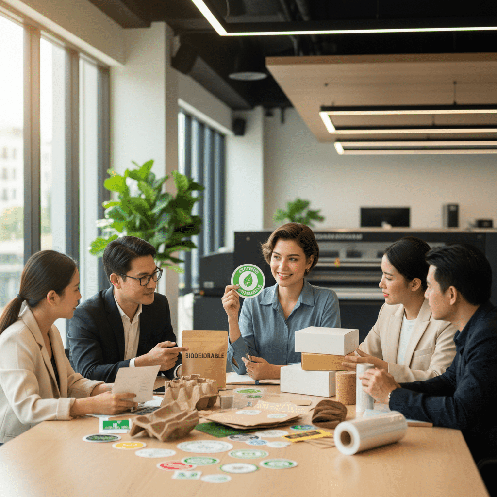 - นวัตกรรมวัสดุและหมึกพิมพ์: การใช้วัสดุทางเลือก เช่น กระดาษคราฟท์, Bioplastic และหมึกพิมพ์จากถั่วเหลืองหรือสาหร่าย จะได้รับความนิยมเพิ่มขึ้นอย่างมีนัยสำคัญ