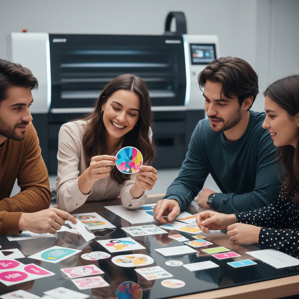 นอกเหนือจากฉลากสินค้าแล้ว สติ๊กเกอร์โลโก้ สติ๊กเกอร์โปรโมชัน หรือนามบัตร ก็เป็นเครื่องมือสำคัญในการสร้างแบรนด์ ด้วยความสามารถในการพิมพ์ที่รวดเร็วและแม่นยำ ทำให้ธุรกิจสามารถสั่งผลิตสื่อเหล่านี้ได้ตามความต้องการ (Print on Demand) พร้อมคุณภาพงานพิมพ์ระดับพรีเมียม ช่วยเสริมสร้างภาพลักษณ์ที่เป็นมืออาชีพในทุกการติดต่อสื่อสารกับลูกค้า บริการเสริมต่างๆ เช่น การออกแบบฟรีและการไดคัทฟรี ยังช่วยลดภาระและต้นทุนแฝงให้กับผู้ประกอบการ ทำให้การเข้าถึงงานพิมพ์คุณภาพสูงเป็นเรื่องง่ายและสะดวกสบายยิ่งขึ้น