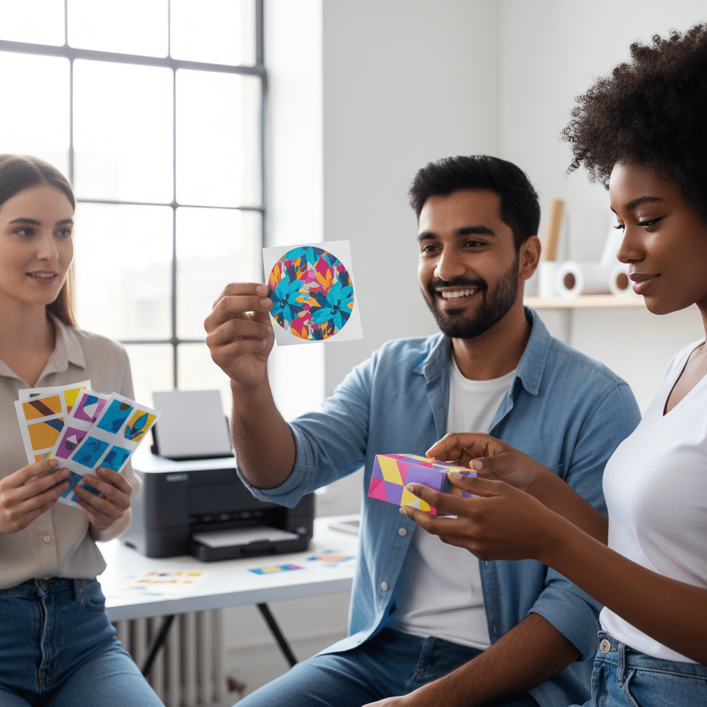 - สติ๊กเกอร์แบรนด์ที่สวยงาม: การผลิตสติ๊กเกอร์โลโก้สำหรับติดบนบรรจุภัณฑ์หรือของชำร่วย สามารถทำได้ในคุณภาพสูง พร้อมบริการไดคัทตามรูปทรงที่ต้องการ ช่วยเสริมสร้างภาพลักษณ์ที่เป็นมืออาชีพ