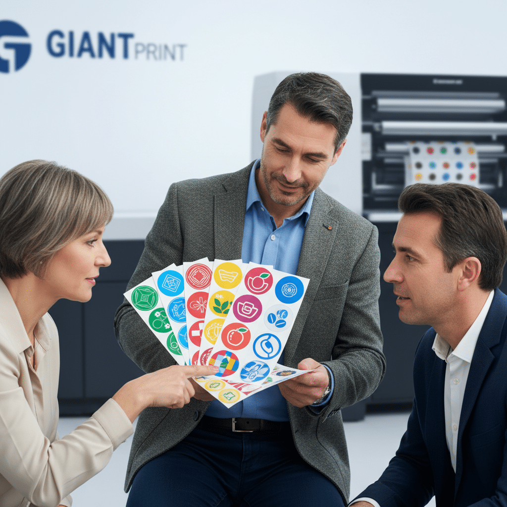 ด้วยเครื่องพิมพ์มาตรฐานระดับอุตสาหกรรมและวัสดุชั้นนำจากต่างประเทศ GIANT PRINT สามารถสร้างสรรค์ผลงานพิมพ์ได้หลากหลายรูปแบบ ไม่ว่าจะเป็นฉลากสินค้า, สติ๊กเกอร์, สกรีนแก้วกาแฟ, นามบัตร, บัตรสะสมแต้ม, เมนูอาหาร, โบรชัวร์ และอื่นๆ อีกมากมาย ทีมงานมืออาชีพพร้อมให้คำปรึกษาตั้งแต่ขั้นตอนการออกแบบจนถึงการผลิต เพื่อให้ทุกชิ้นงานตอบโจทย์ความต้องการและสะท้อนตัวตนของแบรนด์ได้อย่างสมบูรณ์แบบ