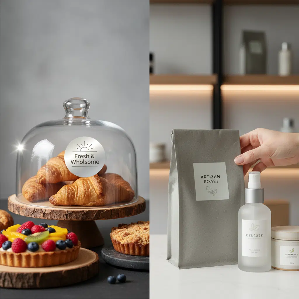 - ตัวอย่างที่เหมาะสม: ฉลากขวดน้ำผลไม้, ซองขนมขบเคี้ยว, กระปุกแยม, ขวดซอสปรุงรส, สติ๊กเกอร์บนกล่องเบเกอรี่