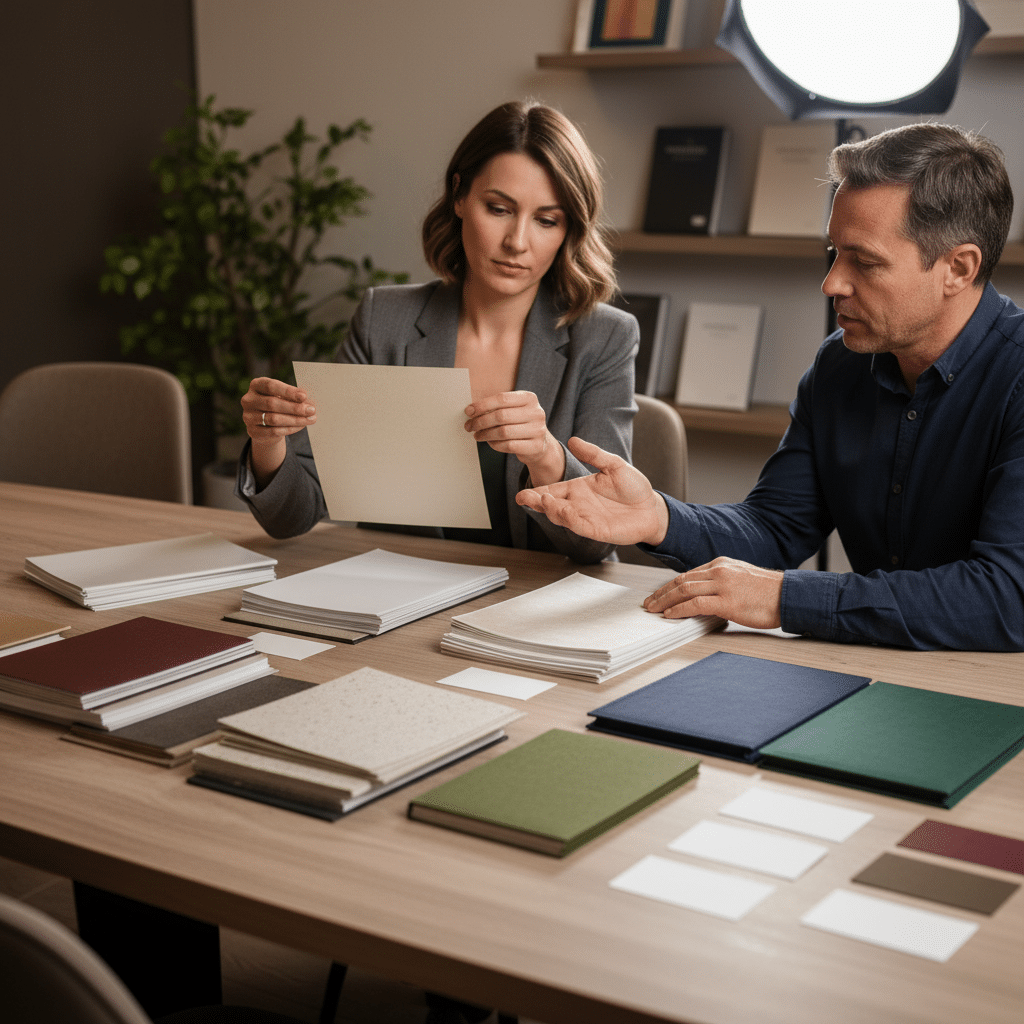 - ความหนาและประเภทกระดาษ: ปัจจัยพื้นฐานที่ส่งผลโดยตรงต่อการรับรู้ถึงคุณภาพและความพรีเมียม กระดาษที่หนาและมีผิวสัมผัสที่ดีจะสร้างความรู้สึกน่าเชื่อถือและมั่นคง