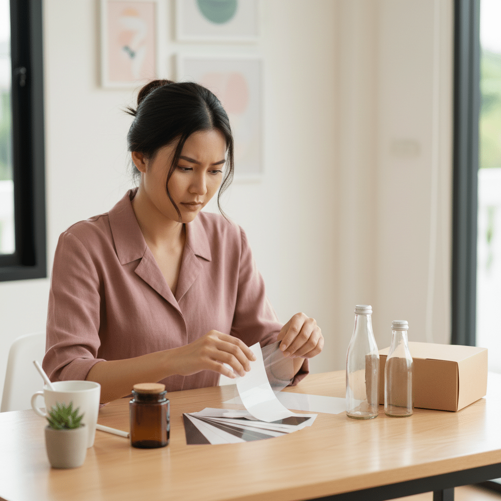 เคล็ดลับที่สำคัญที่สุดคือการขอตัวอย่างสติ๊กเกอร์จากโรงพิมพ์เพื่อนำมาทดลองติดบนบรรจุภัณฑ์จริงก่อนที่จะทำการสั่งผลิตในปริมาณมาก การทดสอบจะช่วยให้เห็นภาพรวมของงานจริง ทั้งในเรื่องของสีสัน, การยึดเกาะของกาว, และความเหมาะสมของวัสดุกับพื้นผิวสินค้า ซึ่งจะช่วยป้องกันความผิดพลาดและค่าใช้จ่ายที่ไม่จำเป็นได้