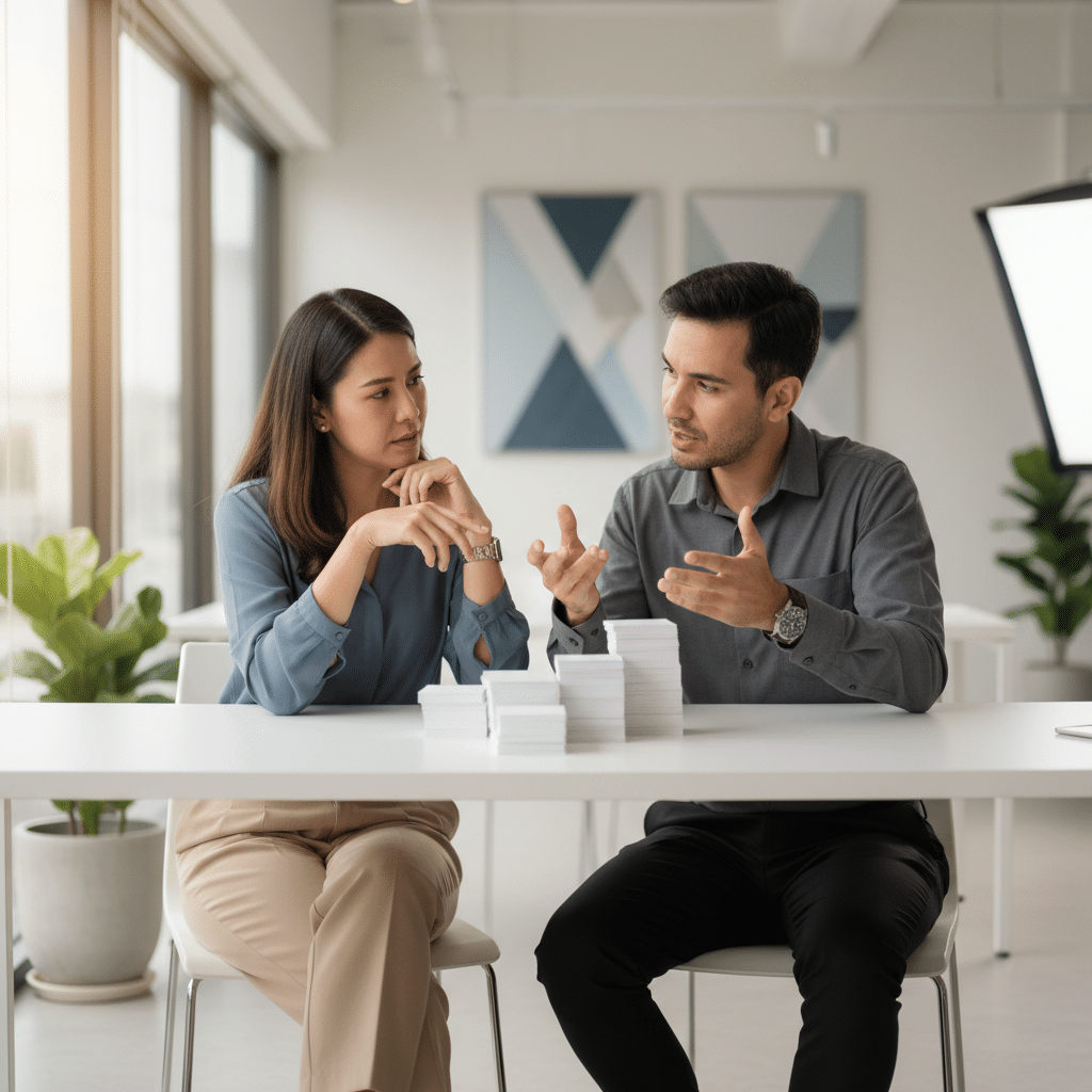 เมื่อมีโลโก้ที่สมบูรณ์แล้ว ขั้นตอนต่อไปคือการนำไปใช้งานบนนามบัตรอย่างมีประสิทธิภาพ นามบัตรยังคงเป็นเครื่องมือสร้างเครือข่ายทางธุรกิจที่สำคัญ การออกแบบที่ดีจะช่วยให้ผู้รับจดจำแบรนด์ได้ทันทีและสร้างความประทับใจแรกพบ