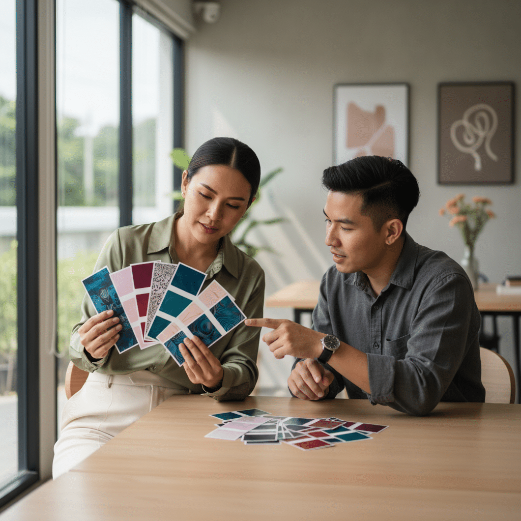 | 3. ออกแบบและทดสอบ | เริ่มต้นร่างแบบและทดลองแนวคิดต่างๆ อาจใช้เครื่องมือออกแบบออนไลน์ที่ใช้งานง่าย เช่น Canva เพื่อทดลองจัดวางองค์ประกอบต่างๆ และดูภาพรวมเบื้องต้น ก่อนที่จะตัดสินใจลงรายละเอียดหรือจ้างนักออกแบบมืออาชีพ |