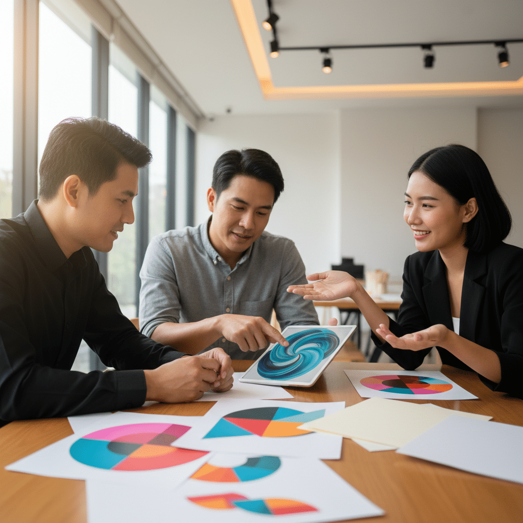 | การเลือกสีที่เหมาะสม | สีมีผลต่ออารมณ์และความรู้สึก การใช้จิตวิทยาสีเป็นเครื่องมือสำคัญ เช่น สีฟ้าสื่อถึงความน่าเชื่อถือและความไว้วางใจ, สีแดงสื่อถึงพลังงานและความตื่นเต้น ควรเลือกใช้สีหลักเพียง 1-2 สีเพื่อสื่อสารบุคลิกของแบรนด์ให้ชัดเจน |