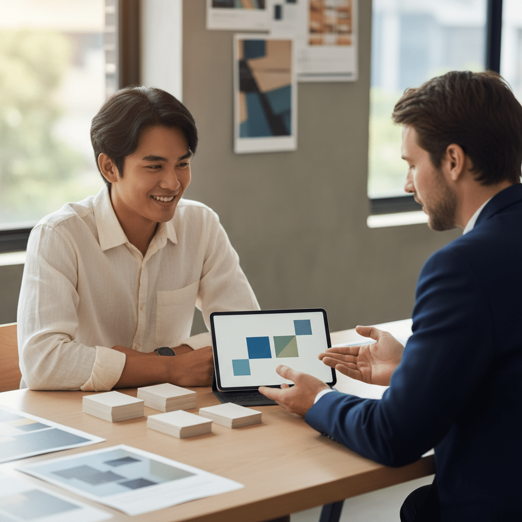 - กระบวนการที่เป็นระบบ: การออกแบบโลโก้และนามบัตรที่มีประสิทธิภาพควรเริ่มต้นจากการทำความเข้าใจแก่นแท้ของแบรนด์ กลุ่มเป้าหมาย และจุดยืนในตลาด ก่อนจะเข้าสู่ขั้นตอนการออกแบบจริง
