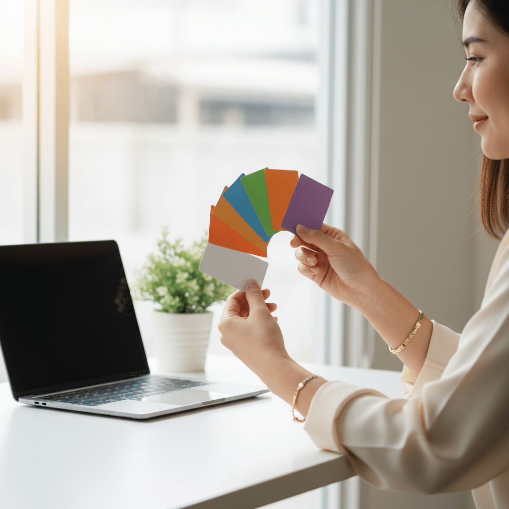 เพื่อให้บัตรสะสมแต้มมีความน่าสนใจและดูเป็นมืออาชีพ การเลือกใช้วัสดุและเทคนิคการพิมพ์เป็นสิ่งที่ไม่ควรมองข้าม กระดาษที่แนะนำคือกระดาษอาร์ตการ์ดความหนาประมาณ 300-350 แกรม ซึ่งมีความทนทานสูง สามารถเลือกเคลือบเงาหรือเคลือบด้านเพื่อเสริมภาพลักษณ์ของแบรนด์ได้ นอกจากนี้ การใช้เทคนิคพิเศษยังช่วยสร้างความแตกต่างและทำให้บัตรดูมีราคา ควรค่าแก่การเก็บรักษา