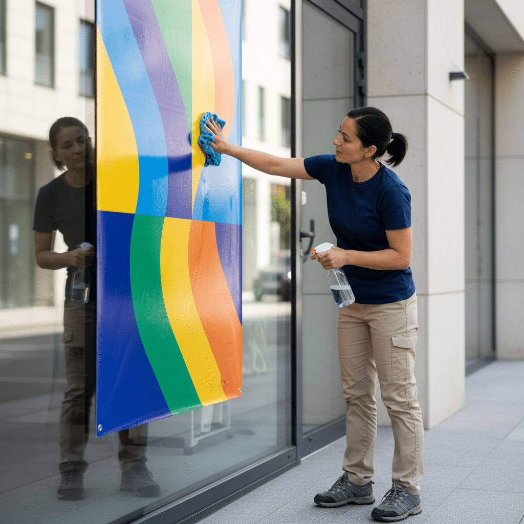 ห้ามพับป้ายไวนิลโดยเด็ดขาด เพราะจะทำให้เกิดรอยยับถาวรที่แก้ไขได้ยากและอาจทำให้หมึกพิมพ์แตกบริเวณรอยพับ วิธีที่ถูกต้องคือการ ม้วนเก็บ โดยหันด้านที่มีภาพพิมพ์ไว้ข้างในเสมอ เพื่อป้องกันผิวหน้าจากการขีดข่วน การม้วนอย่างเรียบร้อยและไม่แน่นจนเกินไปจะช่วยรักษาสภาพป้ายให้ดีที่สุด