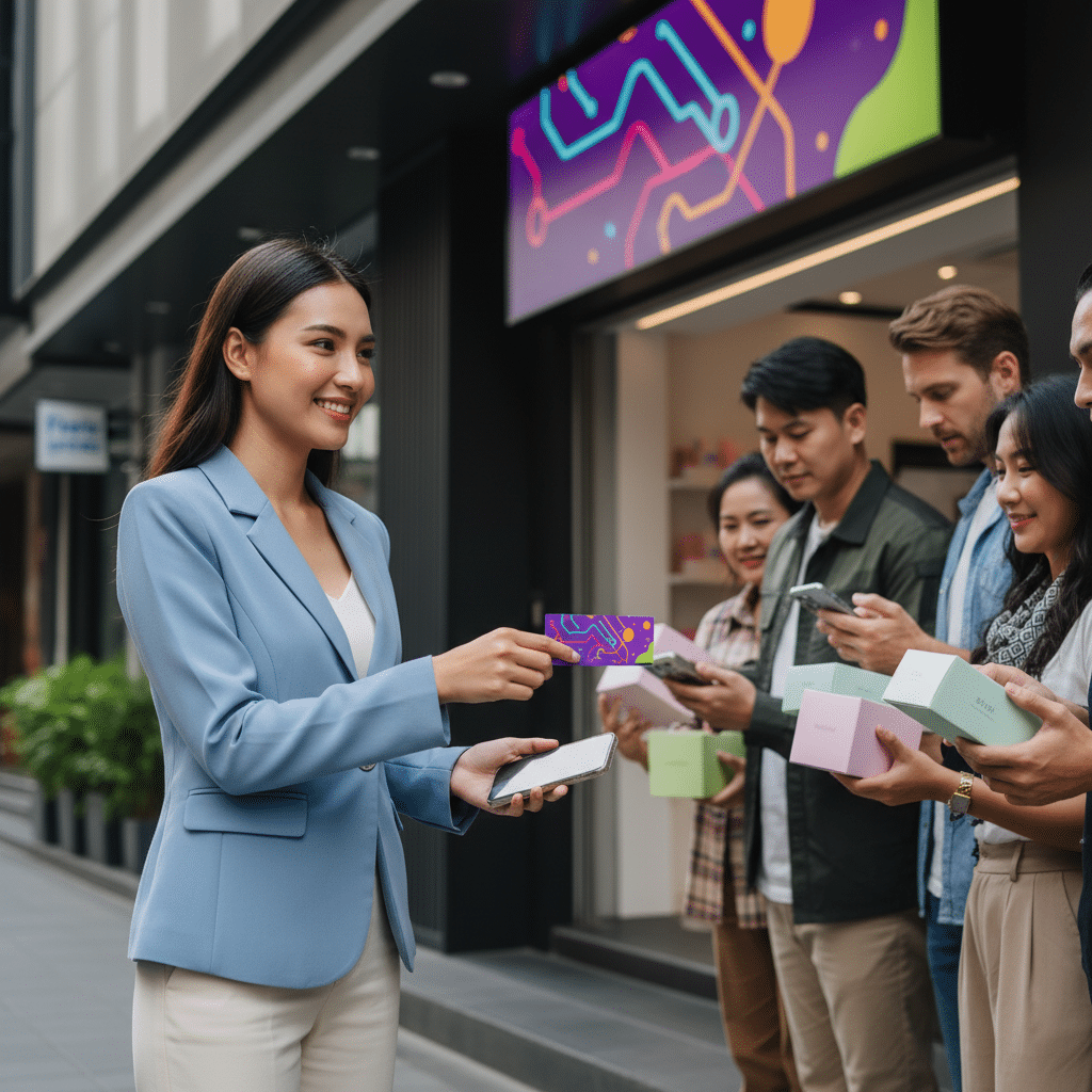 นามบัตรและใบปลิวไม่ได้เป็นเพียงกระดาษที่ให้ข้อมูลติดต่ออีกต่อไป แต่ได้กลายเป็นเครื่องมือปฏิวัติการตลาด O2O ที่สามารถพิสูจน์ผลลัพธ์ได้จริง นามบัตร QR Code สามารถเปลี่ยนการพบปะพูดคุยธรรมดาให้กลายเป็นการเชื่อมต่อทางดิจิทัลได้ทันที แทนที่จะมีเพียงชื่อและเบอร์โทรศัพท์ นามบัตรสมัยใหม่สามารถมี QR Code ที่ลิงก์ไปยังพอร์ตโฟลิโอออนไลน์, โปรไฟล์ LinkedIn, หรือแม้กระทั่งหน้าสำหรับจองคิวนัดหมายได้โดยตรง