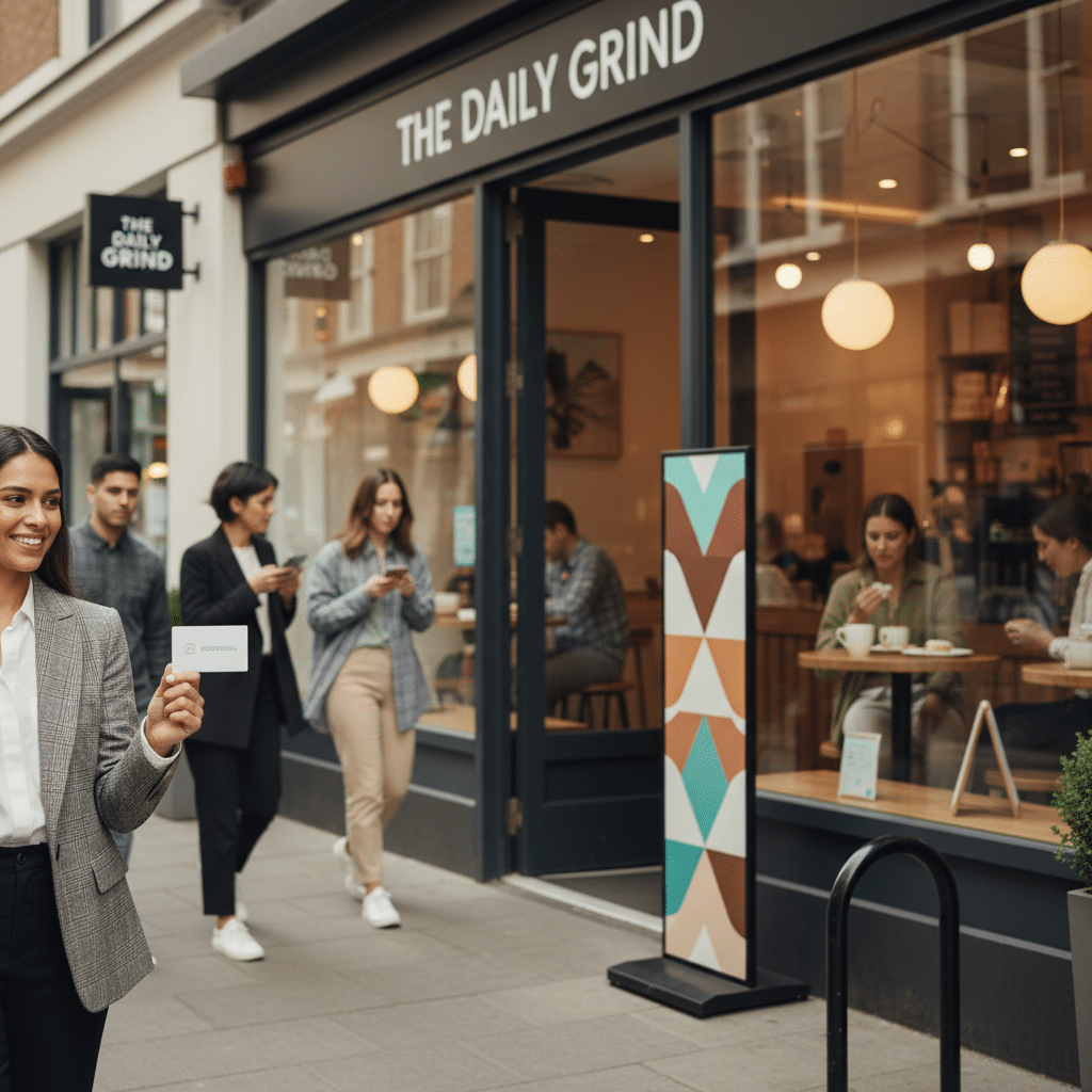 ป้ายโฆษณาหน้าร้านและป้ายไวนิลคือปราการด่านแรกที่สื่อสารกับลูกค้าเป้าหมายที่สัญจรผ่านไปมา การออกแบบที่โดดเด่นและข้อความที่ชัดเจนเป็นสิ่งสำคัญ แต่การเพิ่ม QR Code ที่นำเสนอโปรโมชัน “สแกนรับส่วนลดทันที” หรือลิงก์ไปยังแผนที่ร้านบน Google Maps จะช่วยเปลี่ยนผู้ที่สนใจให้กลายเป็นลูกค้าที่เดินเข้ามาในร้านได้ทันที