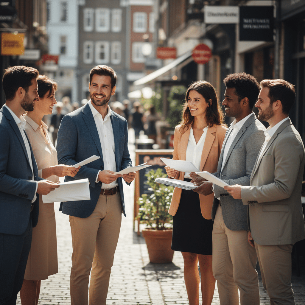 จุดแข็งที่สุดของการใช้ใบปลิวและโบรชัวร์คือความสามารถในการเจาะกลุ่มเป้าหมายตามพื้นที่ทางภูมิศาสตร์ได้อย่างแม่นยำ สำหรับธุรกิจที่มีหน้าร้าน เช่น ร้านอาหาร คาเฟ่ คลินิก หรือร้านบริการต่างๆ การแจกใบปลิวในรัศมี 1-5 กิโลเมตรรอบร้าน สามารถสร้างการรับรู้และดึงดูดลูกค้าที่อาศัยหรือทำงานในบริเวณนั้นได้ทันที ซึ่งเป็นสิ่งที่การยิงแอดออนไลน์แบบกว้างๆ อาจทำได้ไม่ดีเท่าและมีต้นทุนสูงกว่า