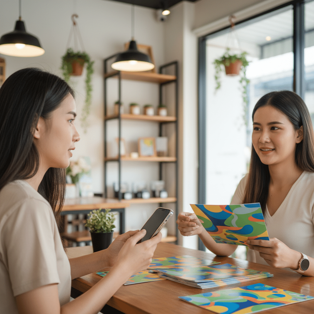 - ต้นทุนเริ่มต้นต่ำ: การผลิตสื่อสิ่งพิมพ์ เช่น นามบัตร ใบปลิว หรือเมนูอาหาร มีต้นทุนที่ไม่สูงมากนัก แต่สามารถสร้างผลกระทบได้อย่างมหาศาลเมื่อเชื่อมต่อกับช่องทางออนไลน์ที่เหมาะสม