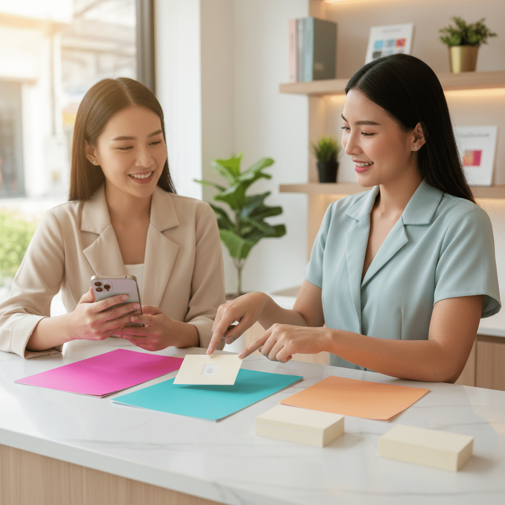 สื่อสิ่งพิมพ์ขนาดเล็กที่เข้าถึงตัวบุคคลได้โดยตรงอย่างนามบัตรและแผ่นพับ เหมาะอย่างยิ่งสำหรับการสร้างฐานลูกค้าออนไลน์ เพียงเพิ่ม QR Code ที่เชื่อมต่อไปยัง LINE Official Account พร้อมข้อเสนอที่น่าดึงดูด เช่น “สแกนเพื่อรับคำปรึกษาฟรี” หรือ “แอดไลน์รับส่วนลด 10% ทันที” ก็สามารถเปลี่ยนผู้รับให้กลายเป็นผู้ติดตามได้อย่างง่ายดาย วิธีนี้ช่วยให้ธุรกิจสามารถสื่อสารกับลูกค้าได้อย่างต่อเนื่องผ่านแพลตฟอร์มที่คนไทยคุ้นเคยเป็นอย่างดี