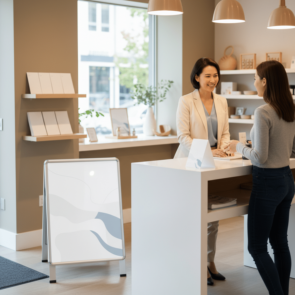 - ป้ายสแตนดี้, เท็นท์การ์ด, และโปสเตอร์หน้าร้าน: เป็นเครื่องมือที่ใช้สื่อสารกับลูกค้าที่อยู่ในร้านโดยตรง เหมาะสำหรับการโปรโมทแคมเปญเฉพาะกิจ, แจกคูปองส่วนลดผ่าน LINE, หรือเชิญชวนให้ร่วมกิจกรรมเพื่อรับสิทธิ์พิเศษ ซึ่งสามารถสร้าง Engagement และกระตุ้นการตัดสินใจซื้อได้ทันที