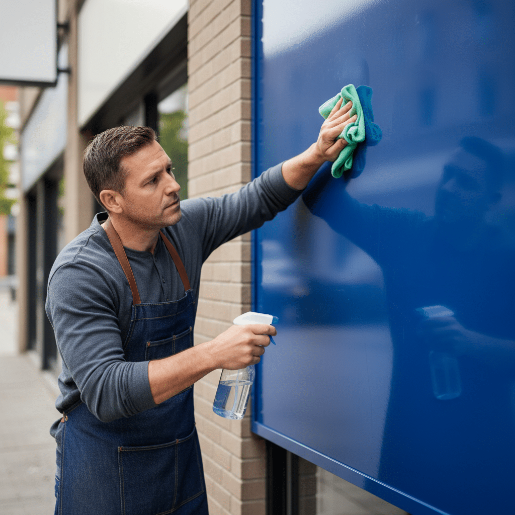 การทำความสะอาดอย่างสม่ำเสมอเป็นวิธีที่ง่ายและมีประสิทธิภาพในการรักษาสภาพของป้ายให้ดูใหม่อยู่เสมอ การปล่อยให้ฝุ่นและคราบสกปรกเกาะติดเป็นเวลานานอาจทำให้คราบฝังแน่นและทำความสะอาดยากขึ้น