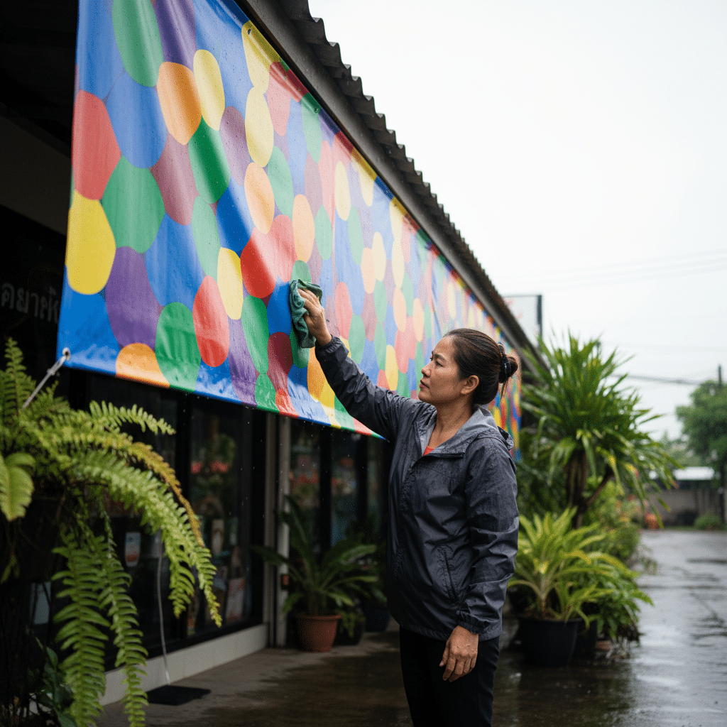 วิธีดูแลป้ายโฆษณาหน้าร้านรับหน้าฝน 2026 ให้สีสดทนทาน