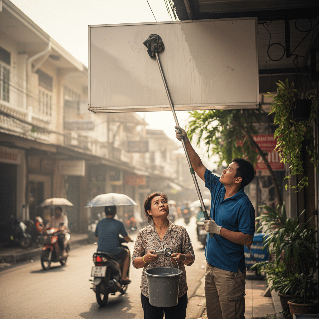 ขั้นตอนการทำความสะอาดป้ายหน้าร้านที่ปลอดภัย