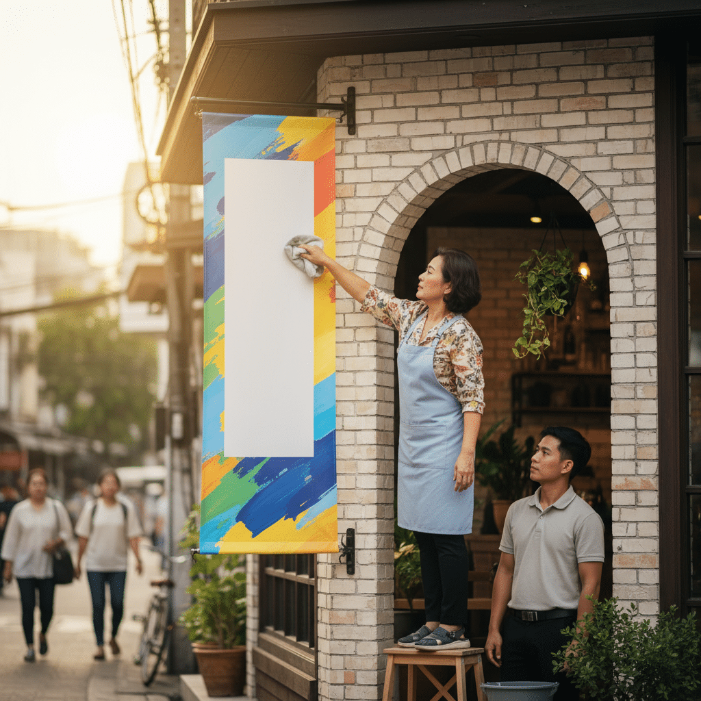 วิธีดูแลป้ายโฆษณาหน้าร้าน ให้สีสดทนแดด ใช้งานคุ้มค่า