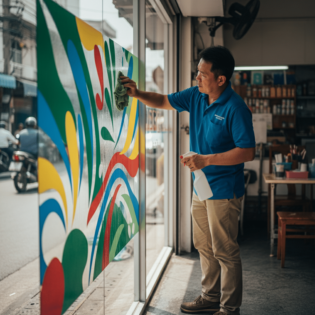เทคนิคดูแลป้ายไวนิลและสติ๊กเกอร์กลางแจ้งให้สีสดทนนาน 2026 ฉบับสมบูรณ์