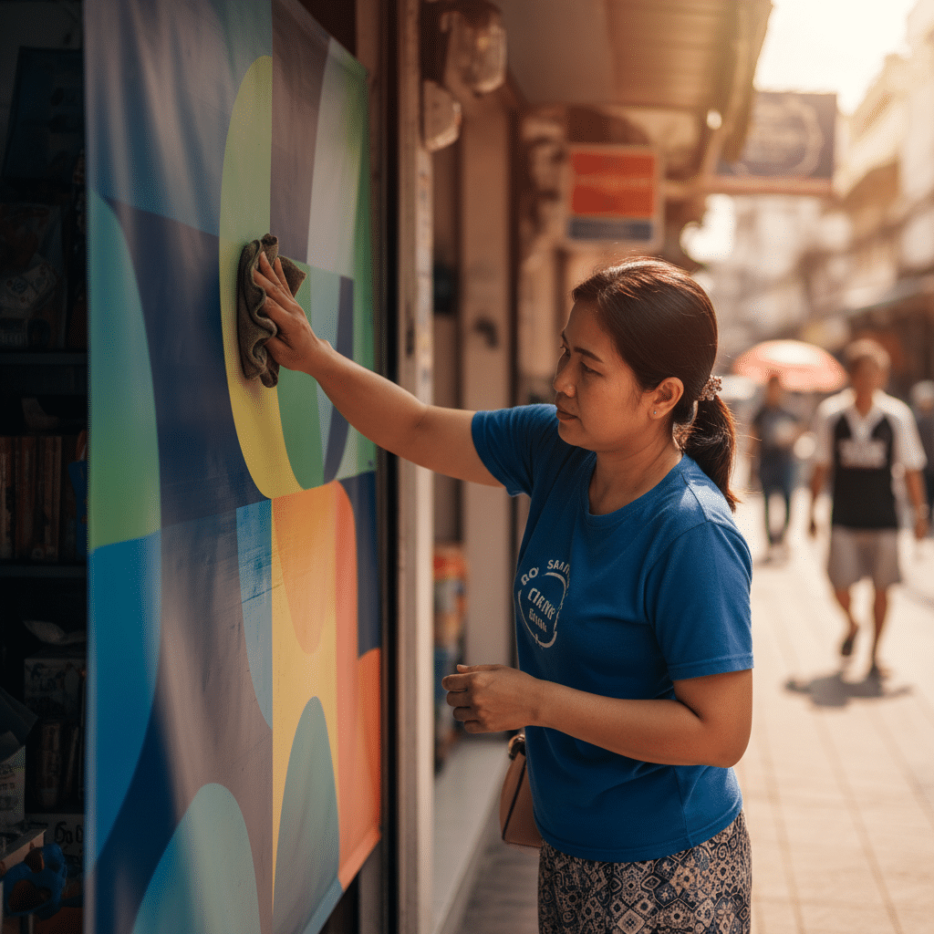 ป้ายโฆษณาและสติ๊กเกอร์หน้าร้านเป็นเครื่องมือสื่อสารด่านแรกที่สร้างความประทับใจให้กับลูกค้า การดูแลรักษาสื่อเหล่านี้ให้มีสีสันสดใสและสภาพดีอยู่เสมอจึงเป็นสิ่งจำเป็น โดยเฉพาะในสภาพอากาศร้อนจัดของประเทศไทยที่แสงแดดเป็นปัจจัยหลักที่ทำให้สีซีดจางและวัสดุเสื่อมสภาพก่อนเวลาอันควร