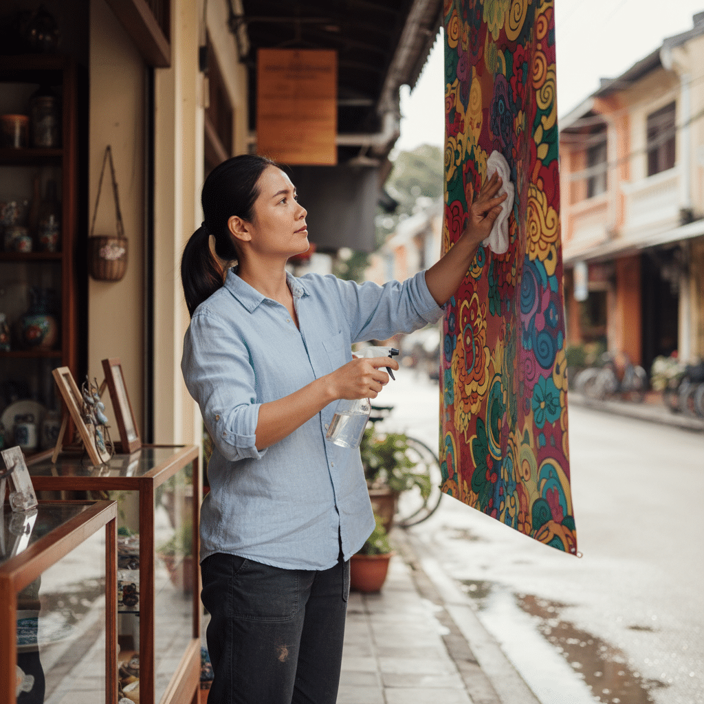 หัวใจสำคัญของการทำความสะอาดคือความอ่อนโยน ควรหลีกเลี่ยงสารเคมีที่มีฤทธิ์กัดกร่อนรุนแรง เช่น สารฟอกขาว, ทินเนอร์, หรือน้ำยาทำความสะอาดที่มีส่วนผสมของกรดหรือด่างเข้มข้น เพราะสารเหล่านี้สามารถทำลายชั้นผิวของไวนิลและหมึกพิมพ์ ทำให้สีซีดและวัสดุเปราะบางลง